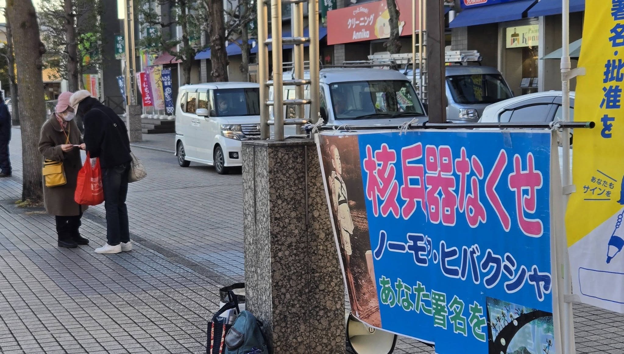 14:30〜17:00までは69署名と買い物。今年最初の69署名行動。あきるのプレイス前で9人が参加し核禁署名が15筆、今日初めて取り組んだ非核三原則をまれ署名、22筆だった。午後3時から約50分取り組んだが、とても寒かった。タイ焼き店に行列ができていた。