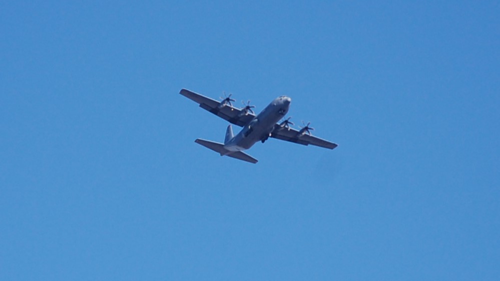 1月9日(金)10:20ごろC130Jが5機編隊で南側から滑走路に向かって高所を飛ぶ。そのうちの1機はわが家の上空を南に。1機は西へ。3機は滑走路上空を北へ飛んだ。はかに、11:16,22,30,43,12:00,12:32には3機編隊で上空を北へ。14:07,18:42,19:21,26,31,35,46,57,20:02,32。いずれもC130J。18回以上飛ぶ。