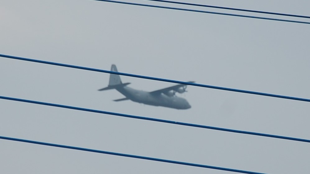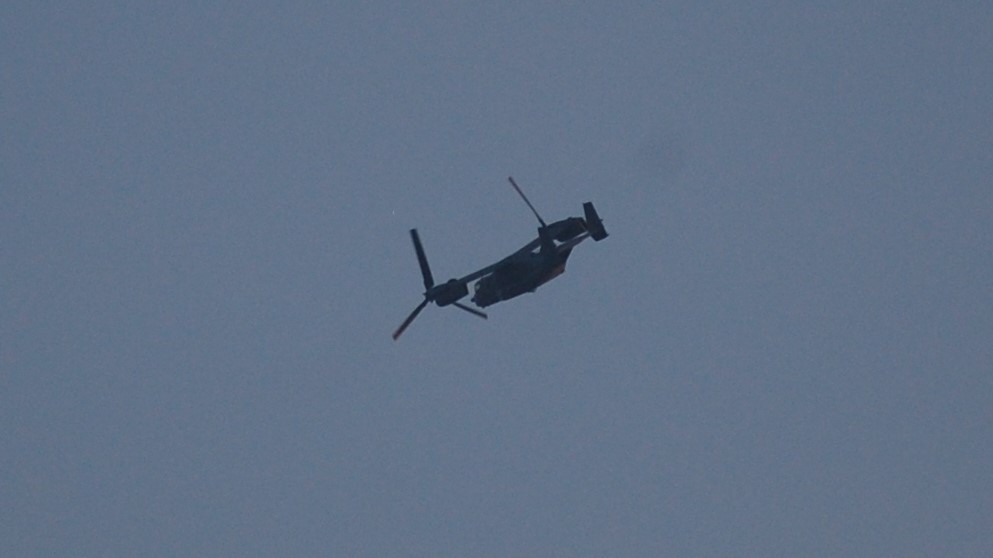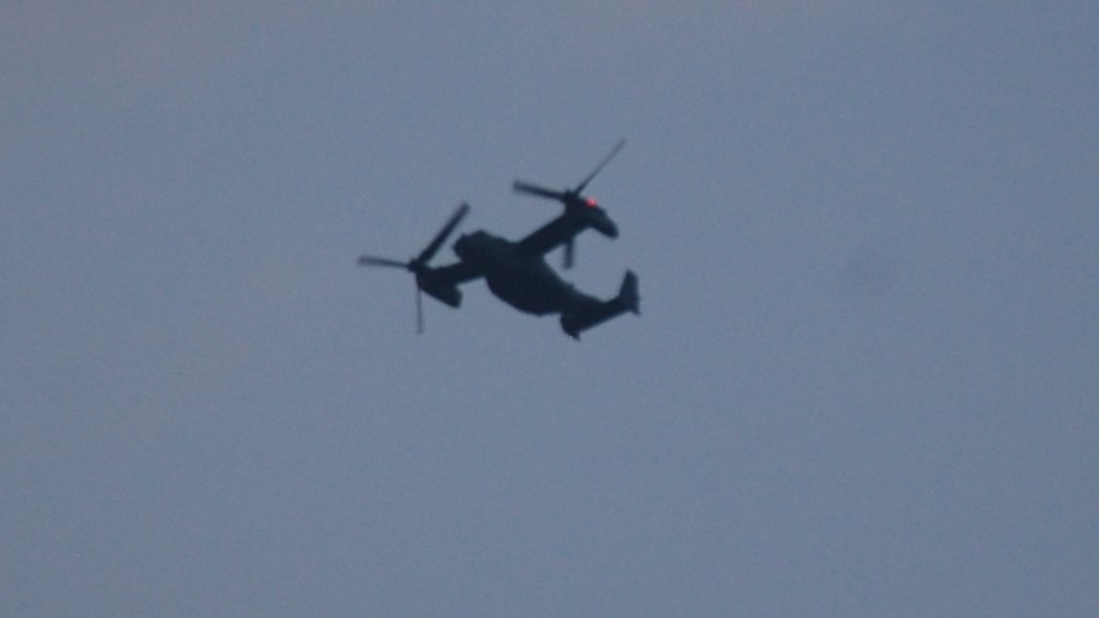 12月1日(月)、朝8:30にC17が1回、上空を南へ。8:56からオスプレイが飛び始める。C130Jも飛ぶ。